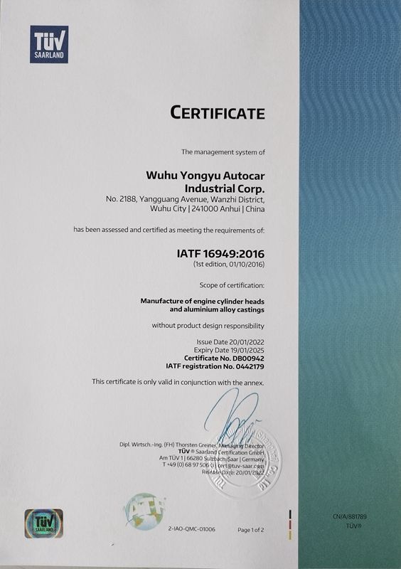 汽車鋁合金氣缸蓋 · 鋁鑄件專業(yè)制造商 鋁合金氣缸蓋行業(yè)標準制定者 股票簡稱:永裕股份 股票代碼:839561